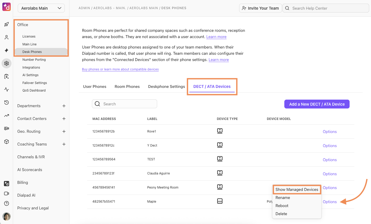 To remove faxing functionality from an ATA device for faxing, head to your Admin Settings from Dialpad.com