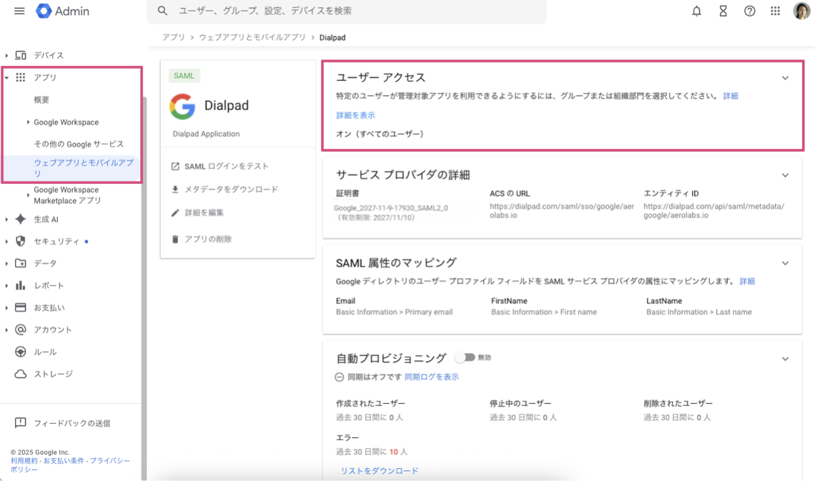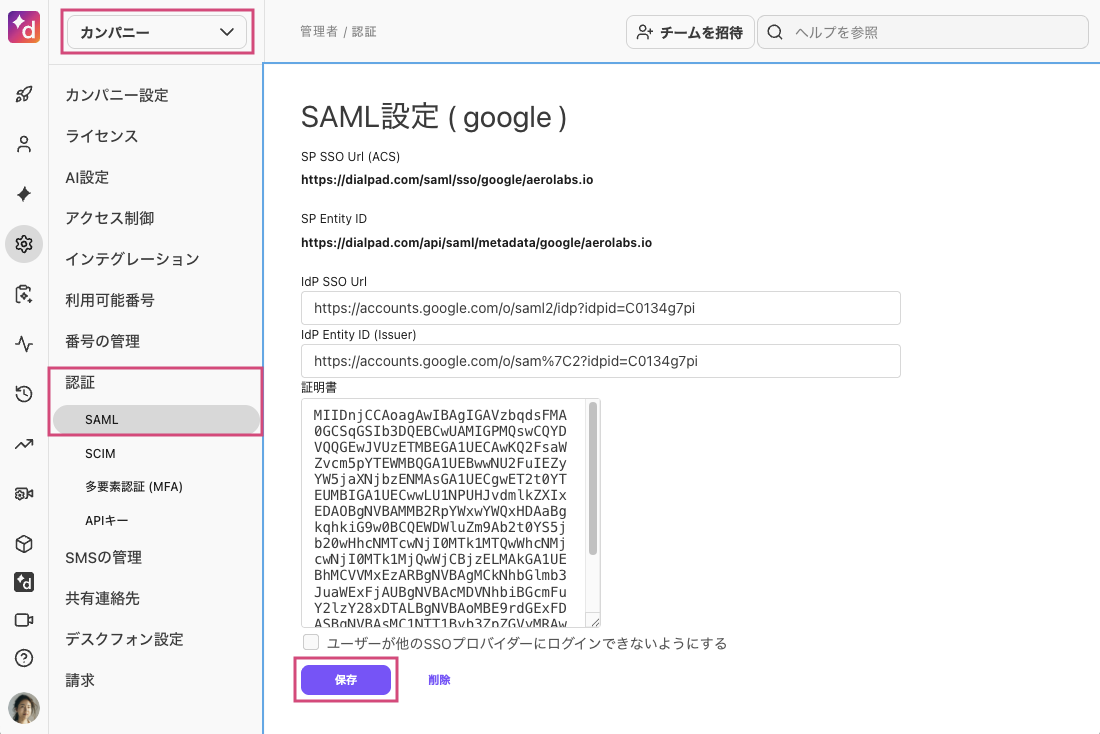 以下、SAML 2.0 サービスプロバイダーとして Dialpad を設定する手順です。