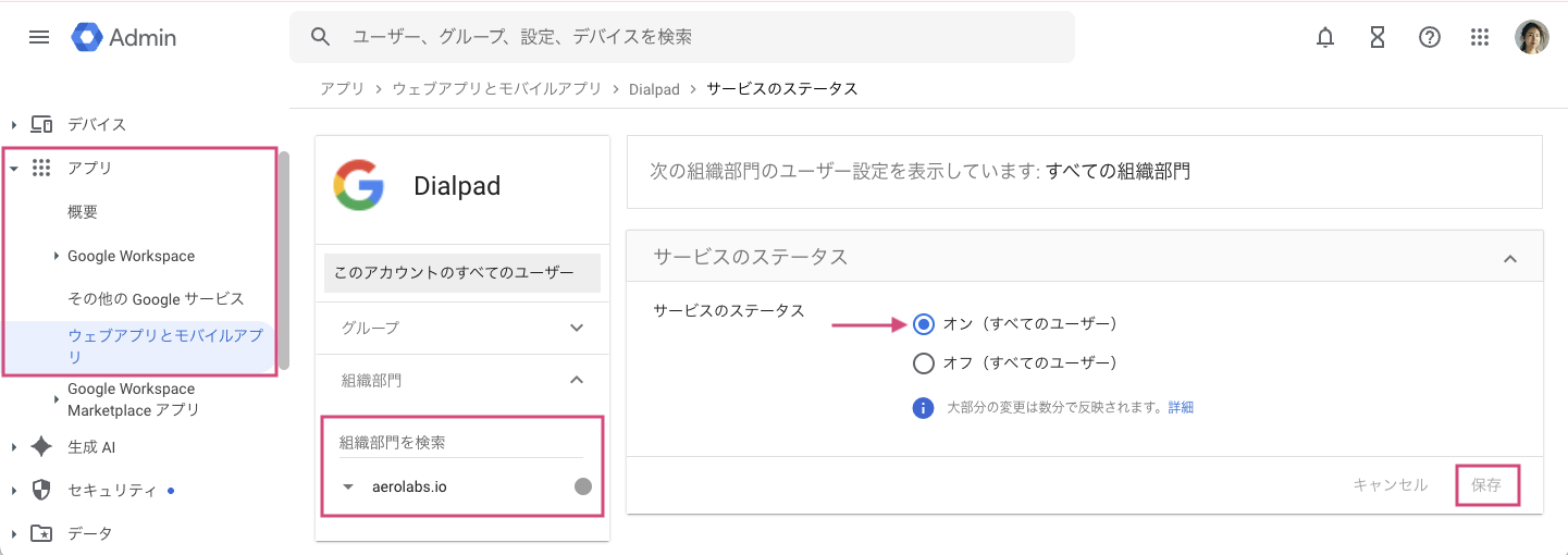 本設定は、Google Workspace 特権管理者権限で実行ください。