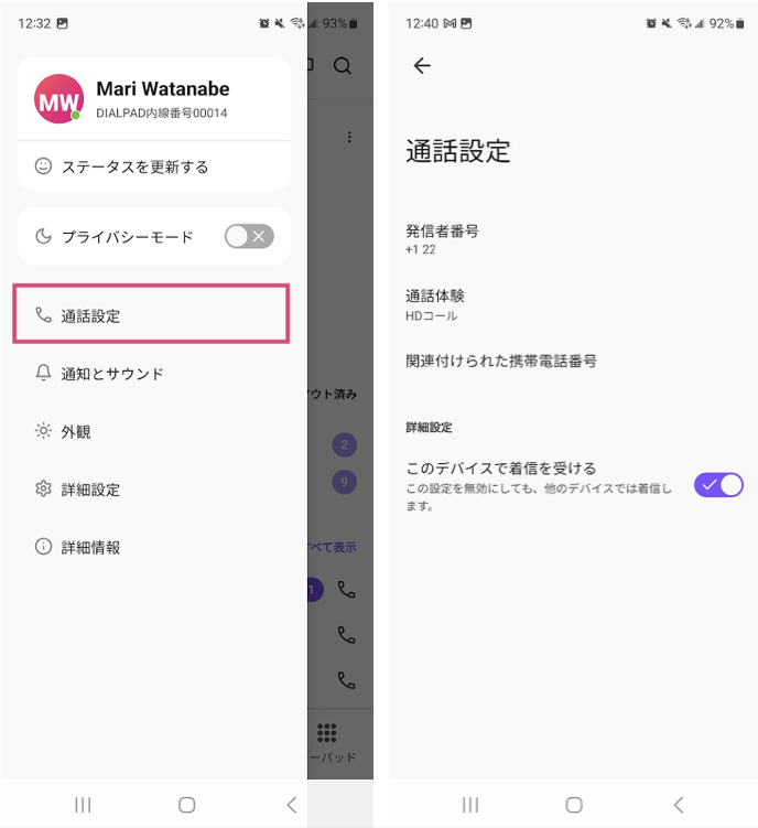 このデバイスで着信を受ける