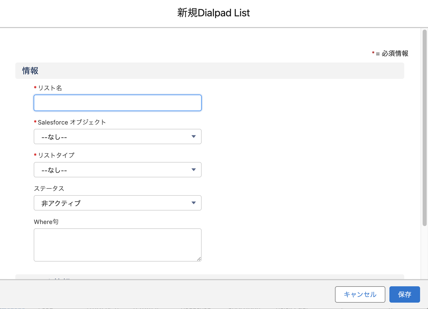 • リスト名: 架電リストの名前 (文字、数字、ハイフンやアンダーバーの入力可)
