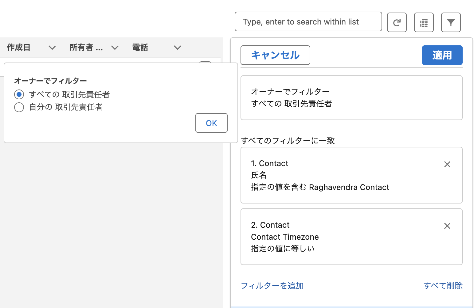 • 例: Open Opportunityというリストがあり、フィルター条件がステータス=Openである場合、もしこのリストにあるレコードAのステータスがClosedに更新したら、レコードAはOpen Opportunityリストから削除されます。