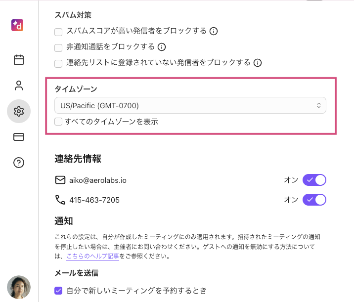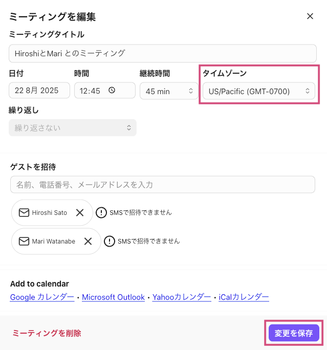 ミーティングのタイムゾーンはいつでも設定・編集できます。
