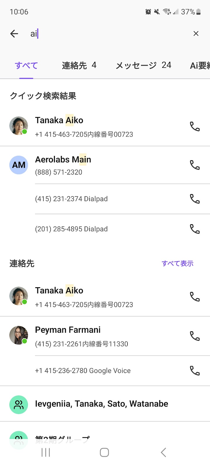 Dialpad の Android アプリで、目的の情報をより簡単に見つけられるようになりました。検索すると、結果が即座に1つの画面に表示され、再検索することなく確認できます。