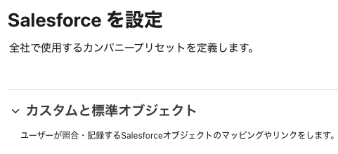 カスタムと標準オブジェクトでは、オブジェクトをマッピングおよびリンクすることで、ユーザーが通話をログし、アクティビティを正しいレコードに関連付けることができます。ここには、標準オブジェクト(リード、取引先担当者、取引先、商談)だけでなく、カンパニー固有の業務要件に合わせて作成されたカスタムオブジェクトも含みます。