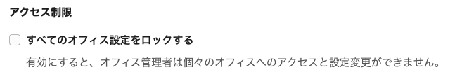 [すべてのオフィス設定をロックする] を選択すると、各オフィスがカンパニーレベルの設定に従うように統一できます。
