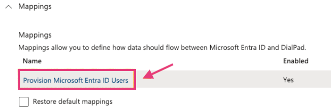 10. [マッピング] セクションで、[Provision Microsoft Entra ID Users] をクリックします。