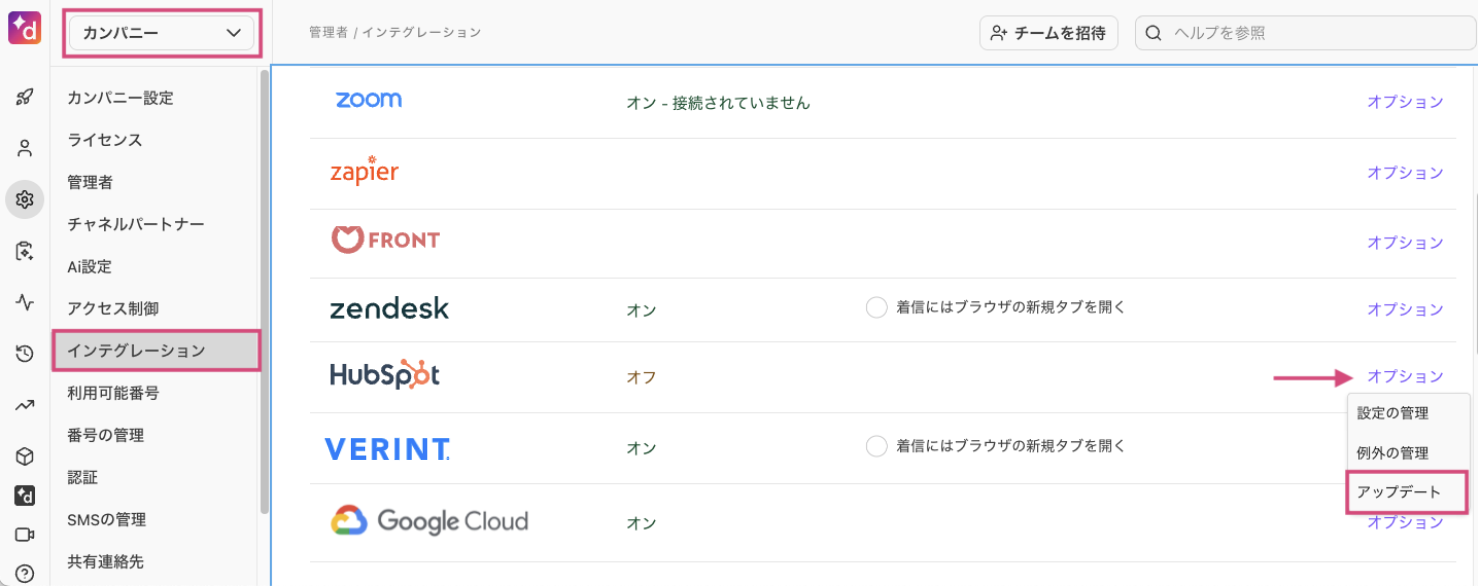 新しい HubSpot にアップデートするには、Dialpad アプリにアクセスします。