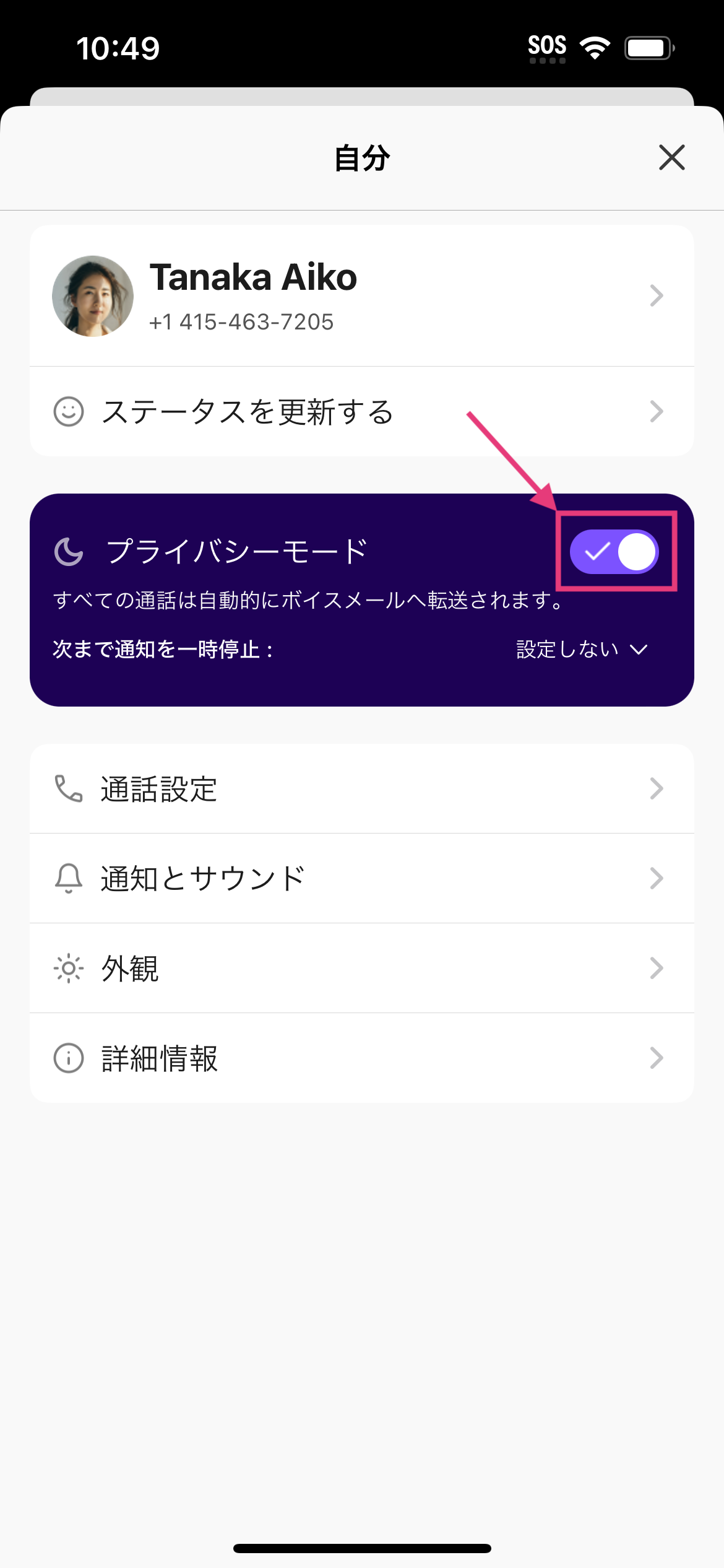 以下、Dialpad iOS モバイルアプリ上での主な設定を確認します。