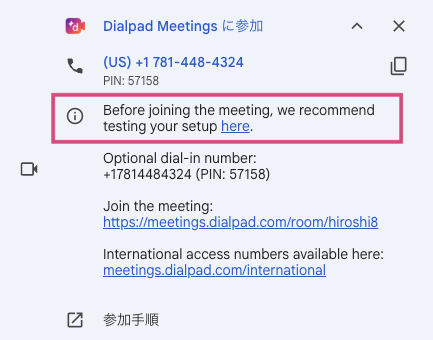 ミーティングに参加する前に、設定をテストすることを推奨します。
