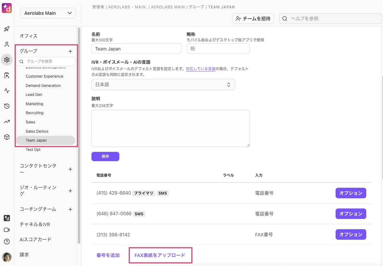FAX は、Dialpad の個人番号、代表番号、グループ、またはコンタクトセンターから送信できます。