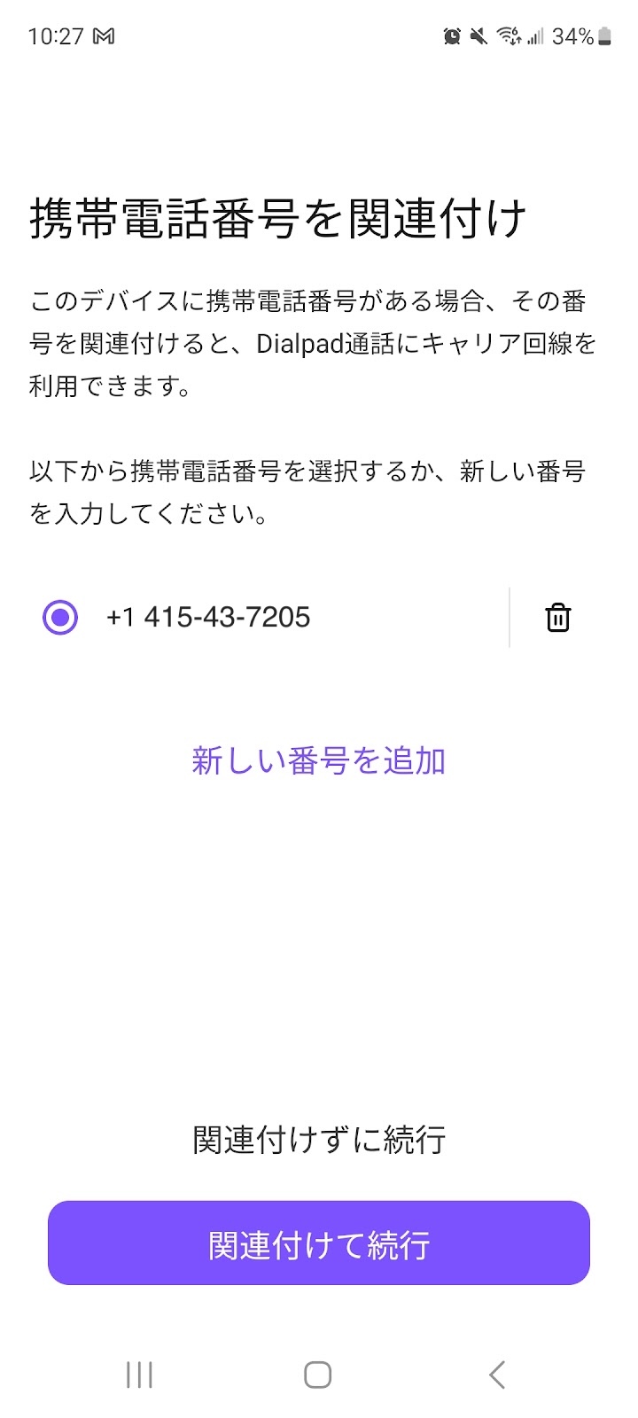 [関連つけずに続行] を選択すると、インターネット接続時のみの着信・発信となります。