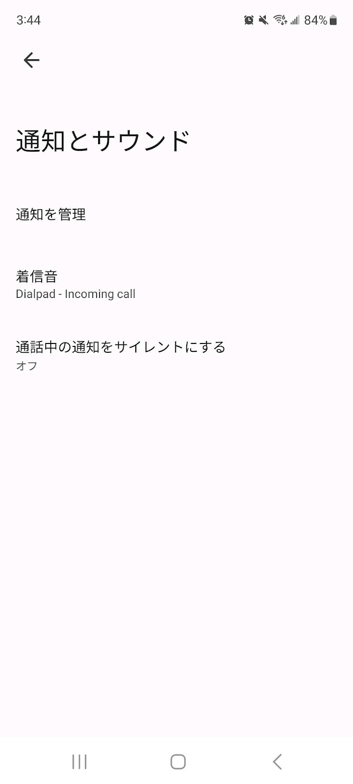 [通話中の通知をサイレントにする] をオンにすると、通話中には通知が無音になります。