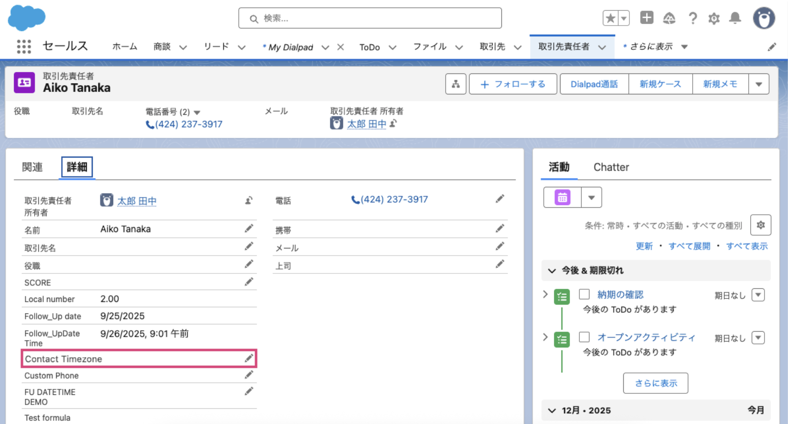 タイムゾーンサポートを有効にするには、Salesforce の Dialpad Lightning タブを開きます。