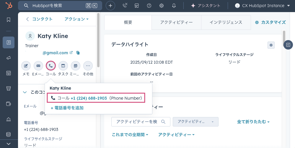 通話が接続されると、Dialpad は自動的に HubSpot の該当連絡先と電話番号を同期します。