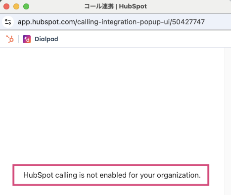 通話ウィジェットに「HubSpot の通話機能がカンパニーで有効化されていません」と表示されるのはなぜですか?