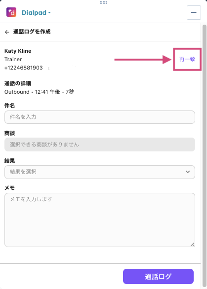複数の連絡先が見つかった場合は、一致候補が表示され、通話をログする前に正しいものを選択します。