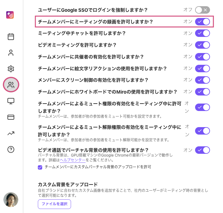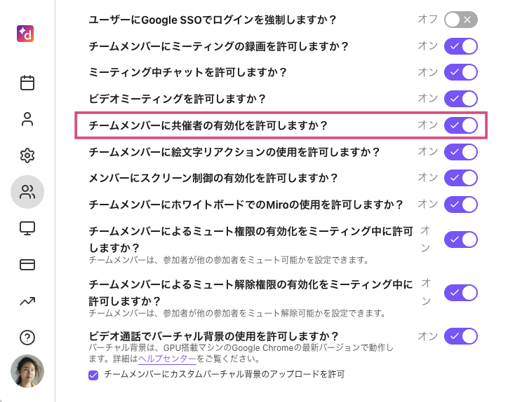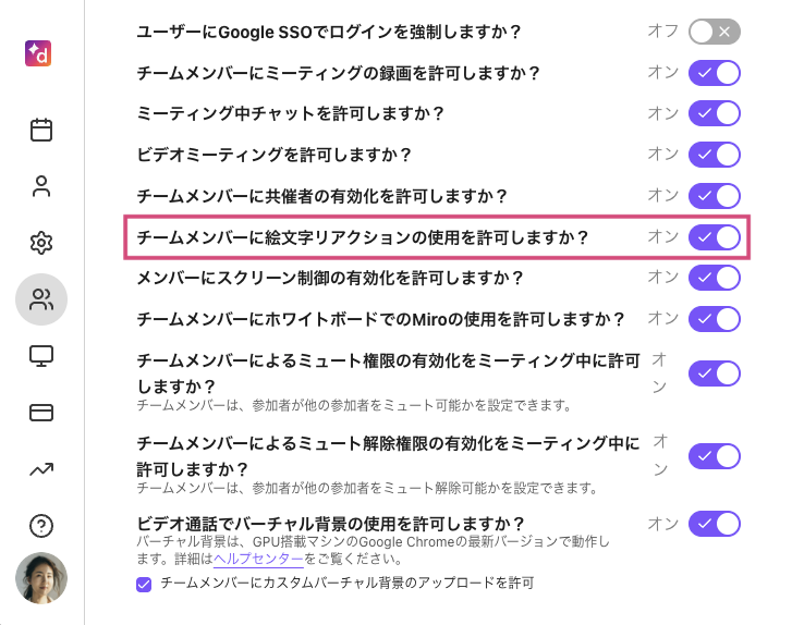 管理者は、チーム全体のミーティング設定を管理できます。