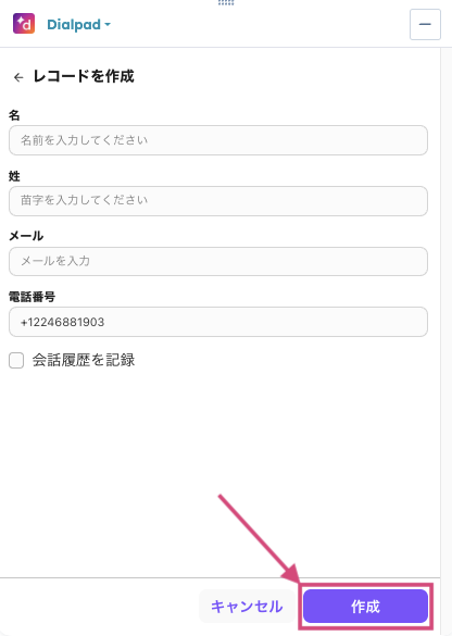 Dialpad の連絡先や番号が既存の HubSpot 連絡先に一致しない場合は、Dialpad アプリから新しい HubSpot 連絡先を作成します。