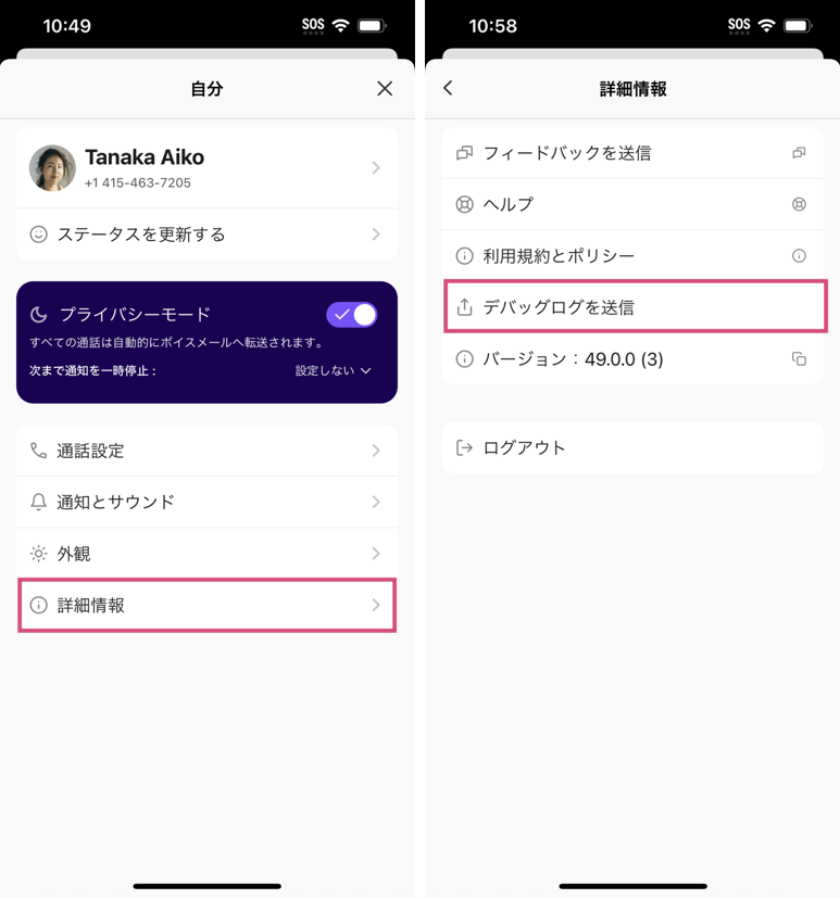 iPhone の Dialpad アプリからデバッグログを送信する方法は次の通りです。